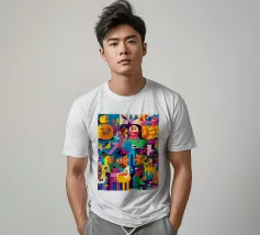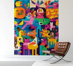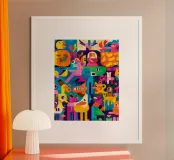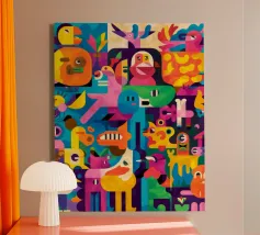 Vibrant colors and whimsical shapes create a lively and joyful composition. This painting captures the fun and freedom of artistic expression, inviting viewers to embrace the playful scene.