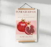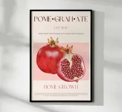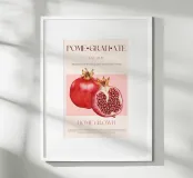 Set on a neutral, cream background, this elegant illustration of the pomegranate fruit adds sophistication to any kitchen, cafe or dining area. This minimalist yet informative design will spark conversation in any setting, adding a refined touch to your environment.