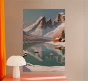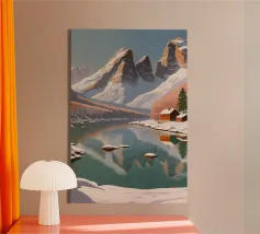 In the quiet days of winter, Lake Braies awakens to a new form of beauty. Surrounded by snow-covered mountains and pine trees, the crystal-clear lake reflects the blue sky and the snow-covered huts on the shore like a perfect mirror. Nature is in deep hibernation here, but the shimmering rays of sunlight on the water hint that spring is not far away. This work captures the tranquil and peaceful winter landscape with a delicate colour palette that is both warm and fresh. A real treat for nature lovers and friends of all ages.