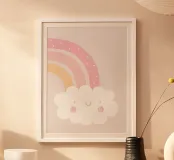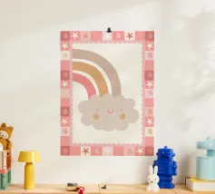 Brighten your space with Rainbow Cloud. Colours: Soft pinks, peach, cream, and warm neutrals. Perfect for nurseries, bedrooms and cozy reading nooks