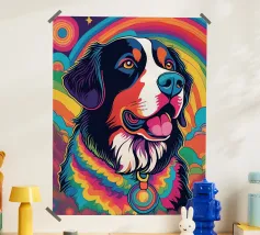 "Rainbow Pup" is a vibrant and playful art print featuring an adorable puppy with a coat of bright, rainbow-colored fur. The design is full of life and energy, making it a perfect piece for those who love animals and colorful, cheerful art. Ideal for brightening up any space, this print brings a sense of joy and whimsy to your home or office.