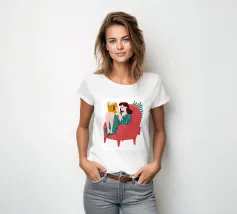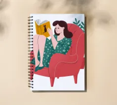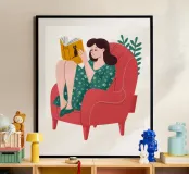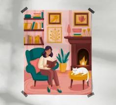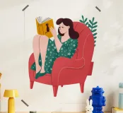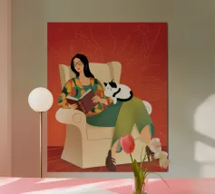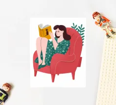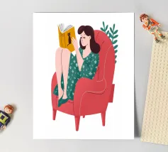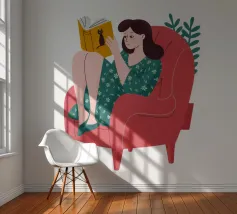This painting features a person sitting in a red chair, engrossed in a book. The scene is cozy and inviting, with the red chair providing a striking contrast to the calm and focused atmosphere.