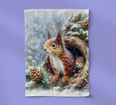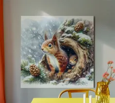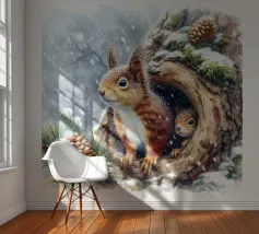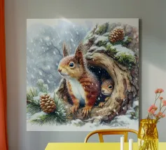 Watercolour of Squirrel And Young in tree