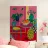 A cozy and colorful interior scene of a small round table with two chairs, a vase of flowers, and a potted plant. The vibrant reds, pinks, and greens create an inviting and intimate atmosphere.