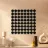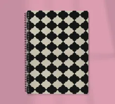 A repeating geometric pattern features black symmetrical shapes set against a light background, creating a visually striking contrast. The design forms a grid-like arrangement with a sense of harmony and order.