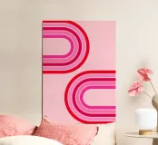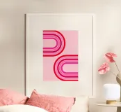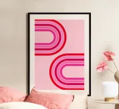 retro design, geometric art, pink decor, abstract curves, vibrant colour scheme, modern graphic print