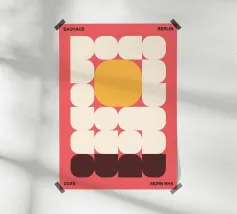 This modern, minimalist design combines clear geometric shapes in red, cream and blue and is reminiscent of timeless retro aesthetics. The playful contrasts and long shadows add depth and dynamism, ideal for lovers of abstract and modern art. Perfect for products such as wall murals, mobile phone covers, mugs or T-shirts to add a touch of elegance and creativity to your everyday life.