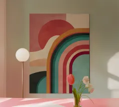 The "Retro Waves" design combines minimalist design with a touch of nostalgia. Inspired by the aesthetics of the 70s and 80s, it offers soft, curved lines reminiscent of sunsets, wide horizons and calm ocean waves. The subtle, contrasting colours combined with simple geometric shapes create a calming yet powerful effect.