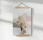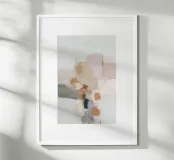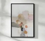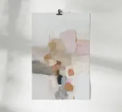 This abstract nature illustration combines soft colours in light pink, beige and light grey with organic colour fields, shapes and fine details. The combination of brushstrokes and muted tones creates a dreamy, whimsical scene that is perfect for modern interiors.