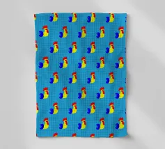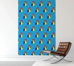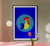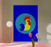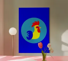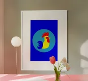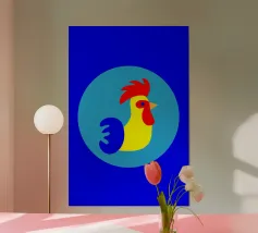 This illustration offers a modern, minimalist reinterpretation of the traditional rooster motif. Using clean geometric shapes, the design evokes the imagery of the 1960s and objects found at flea markets. The use of bright, pop colours gives your décor a strong visual identity and a distinct vintage touch.