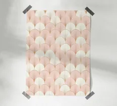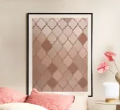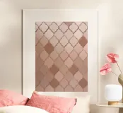 This elegant painting combines rose gold crystals and a symmetrical honeycomb pattern in soft shades of pink and cream beige to create a luxurious boho work of art. The fine details create an impressive grace and depth.