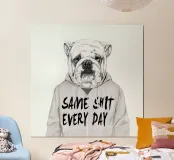 Bring a dose of humour into your space with this eye-catching wooden framed art print featuring the design “Same shit every day” by Balazs Solti. Perfect for those who appreciate a cheeky, light-hearted vibe, this print showcases a quirky bulldog with a bold statement that resonates with many of us. At 10 x 10 cm, it's an ideal size for sprucing up small spaces, whether it’s your home office, living room, or even a buddy's den. The high-quality print and sturdy wooden frame ensure longevity, making it not just a whimsical addition but also a lasting one. Gift it to a friend who enjoys playful art, or treat yourself to a piece that brings a smile every day. This print is perfect for anyone looking to add some character to their decor or simply convey a relatable message. Embrace the fun and unique style of this artwork and enjoy the daily reminder to not take life too seriously!