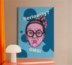 A bold pop-art inspired ink illustration capturing a moment of disbelief — somewhere between sarcasm and honesty. With playful contrasts of pink and blue, Seriously? turns a simple expression into a statement about modern life and emotion.