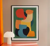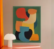 Enhance your living space with the modern charm of this abstract wooden framed art print, titled "Shape Composition". Perfect for adding a splash of colour and contemporary style to your interior decor, this eye-catching piece fits seamlessly into any room, creating an inspiring atmosphere.