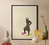 Enhance your space with this striking wooden framed art print featuring 'Shapely Figure' by Cassia Beck Collage. This modern piece showcases an abstract portrayal, perfect for adding a contemporary touch to any room. Ideal for living rooms, bedrooms, or chic office environments.