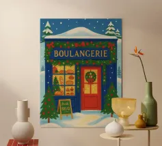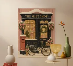 Bring the spirit of Christmas into your home with this beautiful festive poster showcasing a charming holiday shopfront. Perfect for adding a seasonal touch to any room, this wall art creates a warm and inviting atmosphere throughout the festive season.