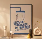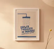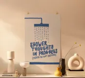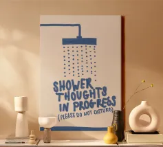 Looking to add a quirky touch to your home? This poster featuring the design “Shower Thoughts” by PurePeachStudio is perfect for those who love creativity and a bit of humour. Ideal for your bathroom, bedroom, or creative space, it reminds us that brilliant ideas often come in the shower! Great as a gift or for personal use, this stylish piece enhances your decor while making a statement. Funky yet elegant, it serves as a gentle nudge to embrace the spontaneity of life. Imagine freshening up your walls with this art that sparks a smile - perfect for anyone who values inspiration or has a great sense of humour! Display it on its own or pair it with other fun prints for an eclectic vibe.