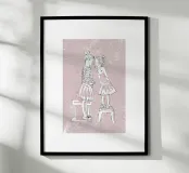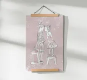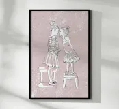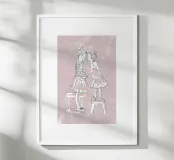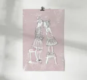 This minimalist wooden framed art print titled "Sisters" by KRUTH DESIGN captures the tender bond between siblings. Ideal for decorating kids' or teenagers' bedrooms, this subtle pink and grey illustration adds a gentle, warm touch to any space. Crafted with high-quality materials, this wall art brings understated charm without personalization, perfect as a thoughtful gift for sisters or family occasions.