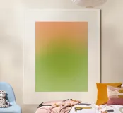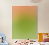 A minimalist abstract composition built from gentle transitions of peach, light green, and muted yellow tones. The soft gradient creates a sense of warmth, balance, and quiet movement, evoking the feeling of light slowly settling into space. Subtle and calming, this artwork invites stillness and works beautifully as a serene accent in modern, minimalist, or contemporary interiors.
