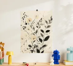 A gentle arrangement of botanical shapes in earthy neutrals, charcoal, and soft gold. This composition balances organic delicacy with modern simplicity, perfect for elevating calm, curated interiors with its understated charm.