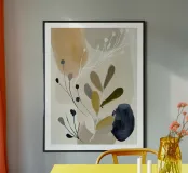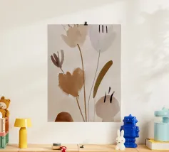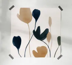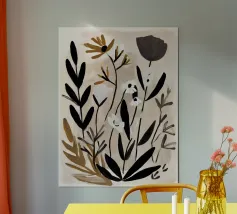 A gentle arrangement of botanical shapes in earthy neutrals, charcoal, and soft gold. This composition balances organic delicacy with modern simplicity, perfect for elevating calm, curated interiors with its understated charm.