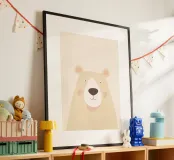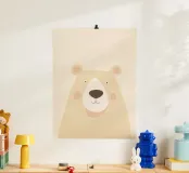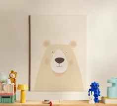 A gentle minimalist illustration of a light-colored bear, created with smooth shapes, soft shading, and a warm, neutral palette. The calm expression and airy background give this artwork a peaceful, comforting presence. Perfect for nurseries, children’s rooms, or modern Scandinavian-inspired interiors, this piece adds subtle warmth and a sense of quiet charm to any space.