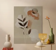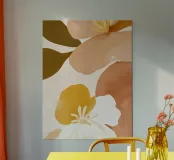 A warm, inviting composition of abstract florals in blush pink, mustard, terracotta, and creamy white. The soft brushstrokes and organic shapes evoke a serene, contemporary elegance — perfect for cozy, modern interiors.