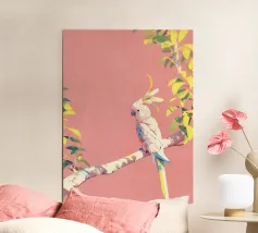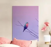 A minimalist composition capturing a moment of stillness and gentle solitude. Soft pastel tones and open space surround a lone bird at rest, evoking calm, freedom, and quiet reflection. This artwork celebrates pause and presence—ideal for interiors that value lightness, serenity, and emotional breathing room.