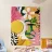 A bold composition where a large yellow circle, like an eclipse, is the centerpiece over abstract white and pink flowers and green leaves. The dark background makes the vibrant colors pop, creating a dramatic and contemporary floral scene.