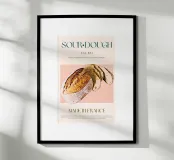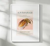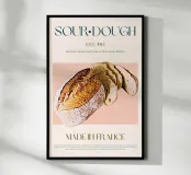 Set on a neutral, cream background, this elegant illustration of the famous sourdough bread adds sophistication to any kitchen, cafe or dining area. This minimalist yet informative design will spark conversation in any setting, adding a refined touch to your environment.