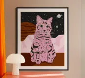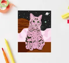 Discover the playful charm of the Space Cat poster by Tara Reed, perfect for adding a cosmic touch to bedrooms or living spaces. Printed on premium matte paper with vivid colours, this poster brings unique, stylish wall art to cat lovers and space enthusiasts alike. Ideal as a quirky gift or personal home decor statement.