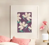 Enhance your living space with the 'Spring Flowers' wooden framed art print, showcasing delicate white lilies against a rich purple background. Perfect for adding a touch of elegance to any room, this beautiful print is a timeless piece that brightens up your home decor.
