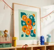 Brighten up your living space with the 'Spring Orange' wooden framed art print by Tamsen Design. Perfect for adding a touch of freshness and vibrancy to any room, this modern piece showcases bold oranges against a calming green background, making it ideal for a contemporary living room or kitchen. Crafted with high-quality materials, it offers a stylish yet cheerful atmosphere, perfect for your home décor.