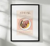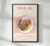 Set on a neutral, cream background, this elegant illustration of the classic steak adds sophistication to any kitchen, cafe or dining area. This minimalist yet informative design will spark conversation in any setting, adding a refined touch to your environment.