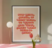 Stop being afraid of what could go wrong quote (peach tone) poster with plastic frame