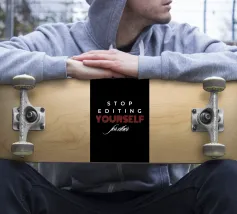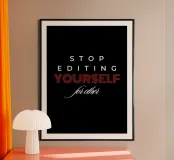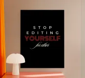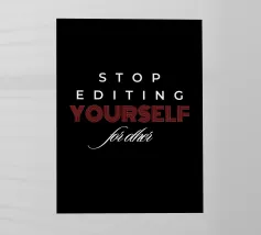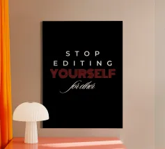 This bold and empowering graphic design reminds us to embrace our true selves and stop conforming to others' expectations. The striking typography and contrasting colors create a powerful visual statement that encourages self-acceptance and authenticity.