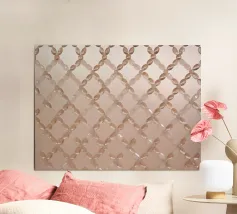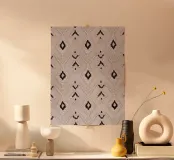 This elegant, oriental woven illustration combines modern and vintage elements with symmetrical diamond patterns in soft pastel and cream colours, perfect for a boho style.