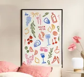 Hand drawn colourful Italy Icons, Italian Art, Amalfi Coast, La Dolce Vita