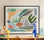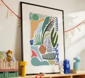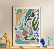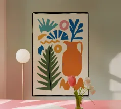 Discover the "Summertime" wooden framed art print featuring vibrant abstract botanical shapes in calming pastel and earthy tones. This modern design adds a fresh, stylish touch to living rooms, bedrooms, or offices. Made from sustainable materials and crafted to EU standards, it's an ideal decorative piece for contemporary home interiors and thoughtful gifts for art lovers.
