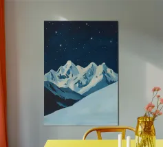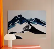 Transform your living space with the 'Summit 2' abstract mountain poster, featuring serene shades of blue and black designed to evoke the beauty of nature. Perfect for adding a touch of sophistication to any room.