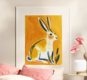 Brighten up any space with the charming “Sunlit Hare” poster by DaarbyN! This uplifting artwork showcases a playful hare on a golden backdrop, perfect for animal lovers, kids' rooms, or anyone looking to add a splash of colour to their walls. Its vibrant hues and whimsical style make it a great conversation starter, while its medium size fits effortlessly into any décor. Adorn your home office, living room, or nursery with this delightful piece and let its sunny disposition bring a smile to your day! Ideal for casual aesthetics or modern art enthusiasts, this poster is sure to sprinkle joy in any setting!