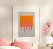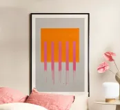 Bright orange meets gradient pink: this abstract work combines geometric clarity with controlled blurring. Five vertical stripes seem to drip out of the orange block - like heat, energy or emotion. The work appears controlled and impulsive at the same time - ideal for modern rooms with power, dynamism and colourfulness.