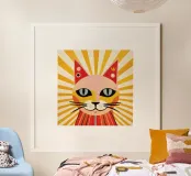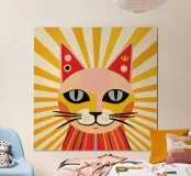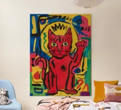 A bold and stylish cat illustration in warm, friendly tones, designed with a clean, graphic aesthetic. This sassy feline combines minimalist shapes with maximum charm, offering a playful yet modern look. Perfect for wall art, home decor, or stylish accessories and gifts, this design adds a quirky pop of personality and warmth to any space - ideal for cat lovers and fans of contemporary illustration.