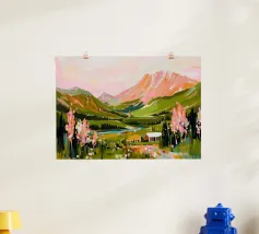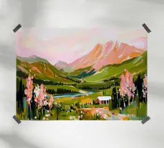 Sarah Gesek gives her landscapes an otherworldly wonderland feel with rich colours and brings distant worlds to your home. The Seattle-based artist prefers to work with acrylic paint on paper, but also with gouache, coloured pencils, wax crayons and more. Inspired by the natural spectacle of rugged cliffs and rolling gardens, starry nights and atmospheric skies, Sarah's works imbue a sense of wanderlust. Dive in, walk through and fall in love with our world all over again.