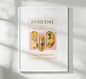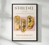 Set on a neutral, cream background, this elegant illustration of the popular strudel pastry adds sophistication to any kitchen, cafe or dining area. This minimalist yet informative design will spark conversation in any setting, adding a refined touch to your environment.