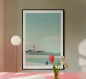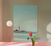 Bring the beauty of Sylt into your home with this minimalist wooden framed art print by Katinka Reinke. Perfect for adding a touch of coastal charm to your living space, this artwork showcases an idyllic scene featuring a lighthouse and serene landscape, making it an ideal addition to a bedroom, living room, or study.
