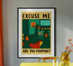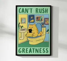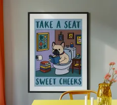 take a seat funny cat bathroom drawing poster with aluminum frame