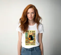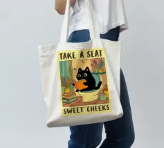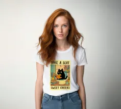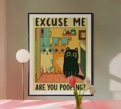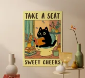 take a seat funny cat bathroom drawing