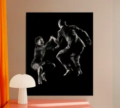 "Dance" is a digital artwork in dynamic computer graphics. Flowing lines, bright colours and moving shapes capture the energy and elegance of dance. Abstract figures seem to float in rhythmic movement, while light and shadow create depth and tension. Digital technology enables a precise depiction of dynamics and expression. "Dance" stands for freedom, emotion and creativity - a visual interplay of movement and feeling, captured in modern digital aesthetics.