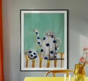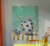 Design with painted tea pot and cup